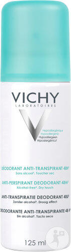 Vichy Deodorant Anti-transpiratie Spray is speciaal ontwikkeld voor als men last heeft van hevige transpiratie en op zoek is naar een goede deodoriserende werking, die comfortabel aanvoelt op de huid. De antitranspirante werkstoffen in deze deodorant geven een directe intense frisheid en een beschermd gevoel tot 48 uur. Bovendien zorgt de zachte en droge textuur ervoor dat de deodorant snel intrekt en niet plakkerig aanvoelt. Uw huid zal satijnzacht aanvoelen tot ’s avonds laat. Hypoallergene formule, zonder alcohol, zonder parabenen.