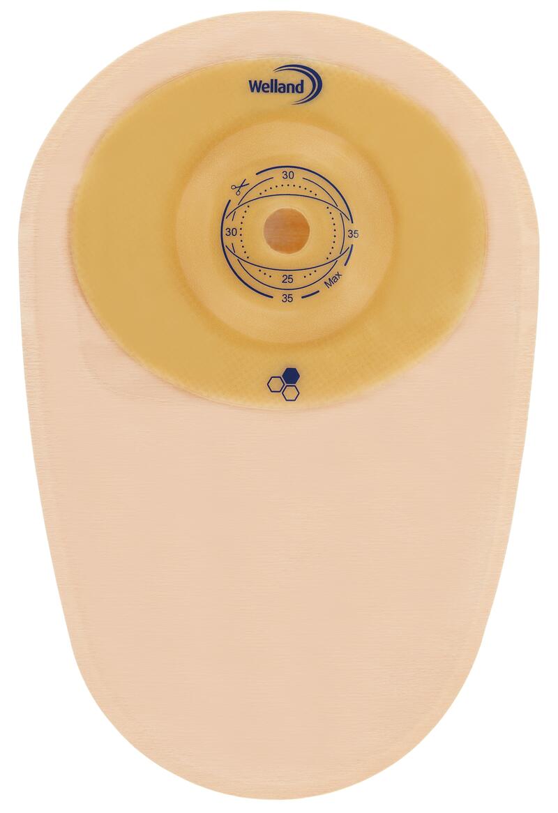 Zandkleurig urozakje. Middels de aftap aan de onderzijde van het zakje, is het zakje te openen en te legen. De zachte nonwoven voor- en achterzijde zorgt voor draagcomfort op de huid. De voorzijde van het zakje is voorzien van een kijkvenster voor inspectie van de stoma. Latexvrij.